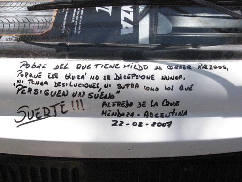 Buen después de pasar una semana en Mendoza, junto a la familia Cruz, haciendo portarretratos y paseando un poco, nos tocó despedirnos, con una sensación muy rara. Es raro cuando alguien te da tanto sin nada a cambio, y casi sin conocernos. No sabemos como expresar nuestro agradecimiento. Además conocimos a una persona muy especial, muy pura (Patri, la mujer de Alfredo). Así que muchísimas gracias a ellos por todo!