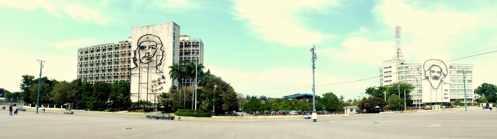 Enfrente de la terminal queda La Plaza de la Revolución donde se encuentra la famosa silueta de la cara del Che en un edificio. Y no solo la del Che sino también la de Camilo Cienfuegos.
