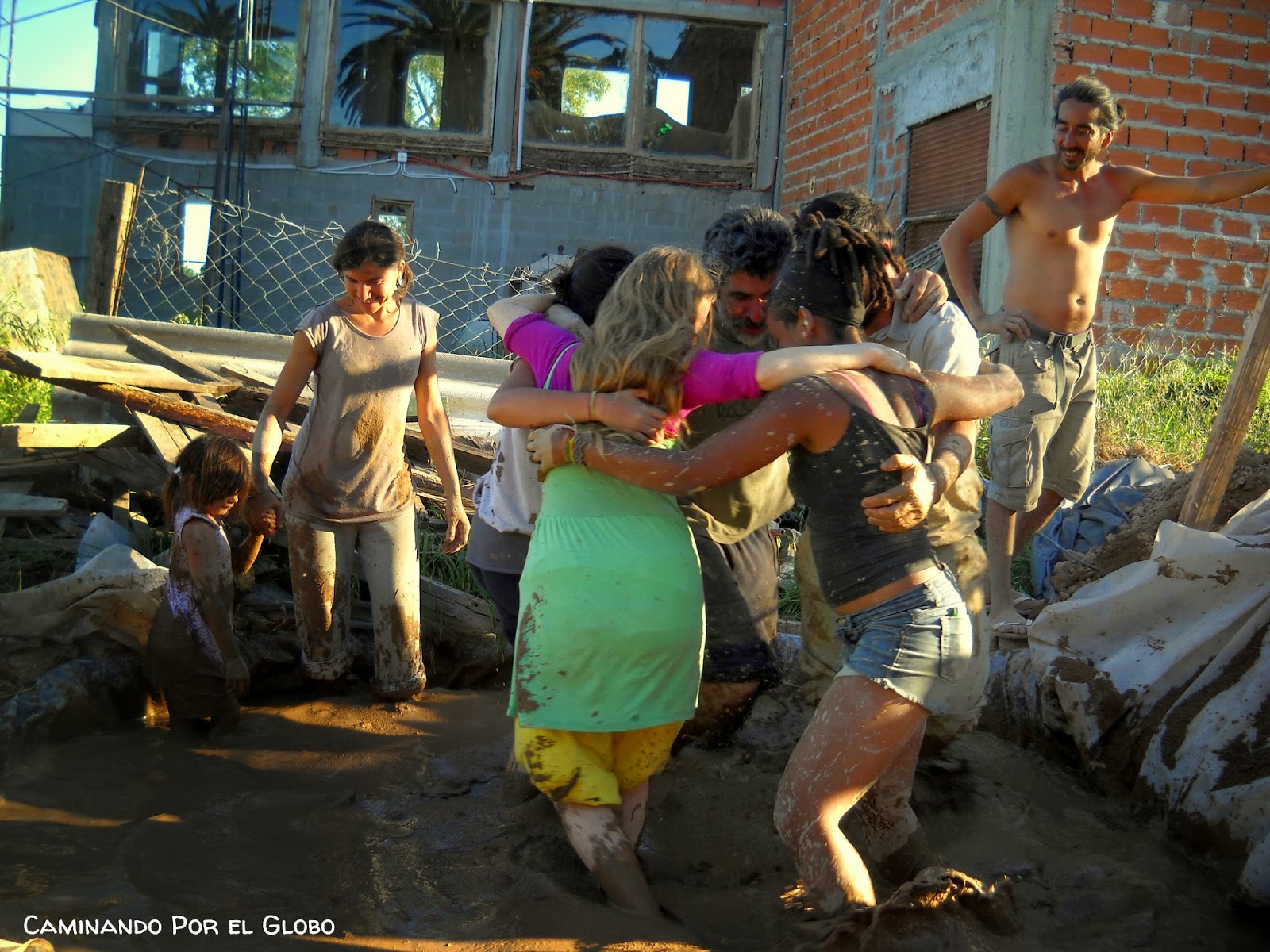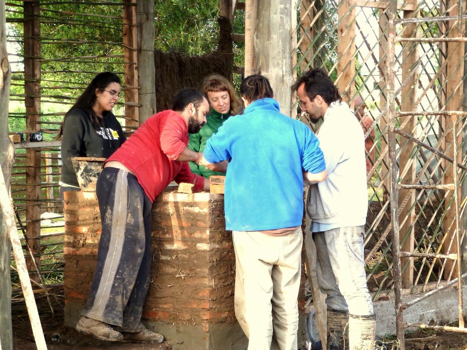 El segundo día por suerte dejó de llover, salió el sol y empezamos a meter las patas y las manos en el barro. Jorge, el profe, realemente me cayó muy bien. Es un señor que sabe muchísimo, es albañil e hijo de albañil, así que está en el tema desde pequeño. Explicaba de una forma muy didáctica y paciente y encima hacía chistes que nos hacían matar de risa. Algo que me encantaba es que él decía: «les muestro cómo lo hago yo y ustedes después pueden inventar otra forma de hacerlo y me la enseñan». Eso es muy humilde. De a poco nos íbamos conociendo entre nosotros y con los profesores. Todo fluía demasiado bien y al tercer día, Domingo, ya era como si todos nos conociésemos desde siempre.