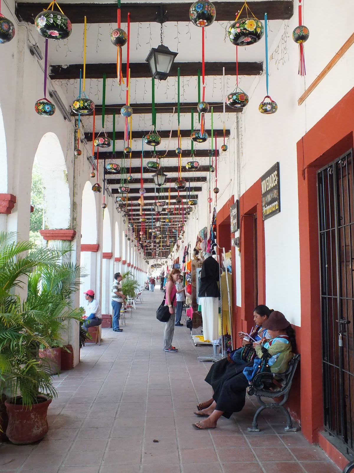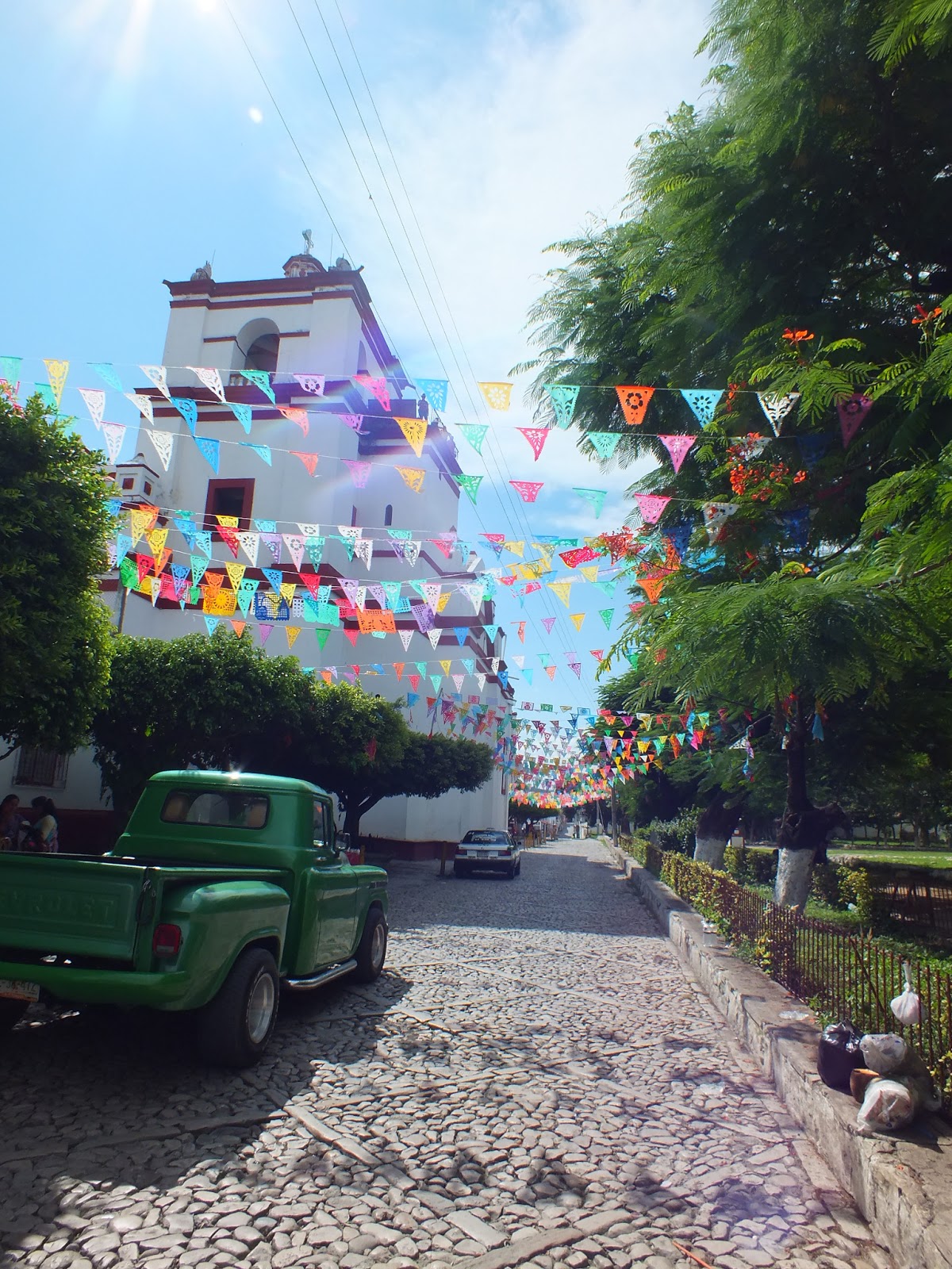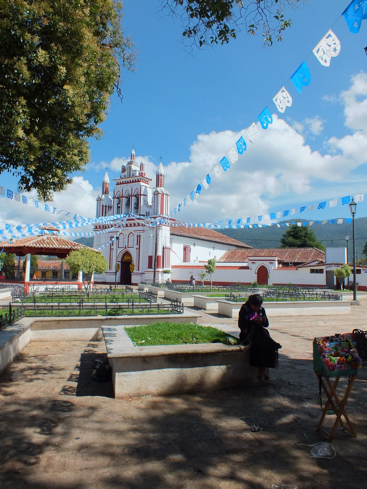 También Nos tomamos un día para ir a conocer San Juan Chamula, que todo el mundo nos hablaba de ese lugar y nos decía que es hermoso. El principal atractivo es que es un pueblo donde solo viven indígenas. El pueblo es lindo, pero a mi no me gustó la experiencia. Me sentía como yendo al zoológico a ver a la gente que vive ahí. Y no está bueno, porque para mí a ellos no les gusta. No dejan que saquen fotos, y no miran con buena cara al turista. Lo más feito me pareció cuando entramos a la Iglesia. Por un lado fue hermoso verlo, y por el otro me di cuenta de la terrible invasión que es para ellos. En la iglesia no hay bancos. Ellos ponen pasto en el piso y se sientan y colocan muchas velitas. Para que se den una idea, deben poner cada uno alrededor de 50 velitas. Entonces uno entra y ve en el piso a cada persona con las velitas rezando y cantando. Y los visitantes entran y van caminando entre la gente hasta llegar al altar, mirando, molestando. Yo pensaba que si yo estaría en un momento espiritual, íntimo, me molestaría mucho que me pase gente por el costado, pidiendo permiso y mirando mi intimidad. Por eso cuando nos dimos cuenta, nos sentamos al fondo, para contemplar la linda energía que había allí dentro, una energía espiritual, había tranquilidad. Sería distinto si uno va a la comunidad y se relaciona con ellos y se genera un intercambio ida y vuelta, lo cual en una tarde es difícil Al menos con una chamula, nos enseñamos algunos puntos de macramé una a la otra. Eso estuvo lindo.
