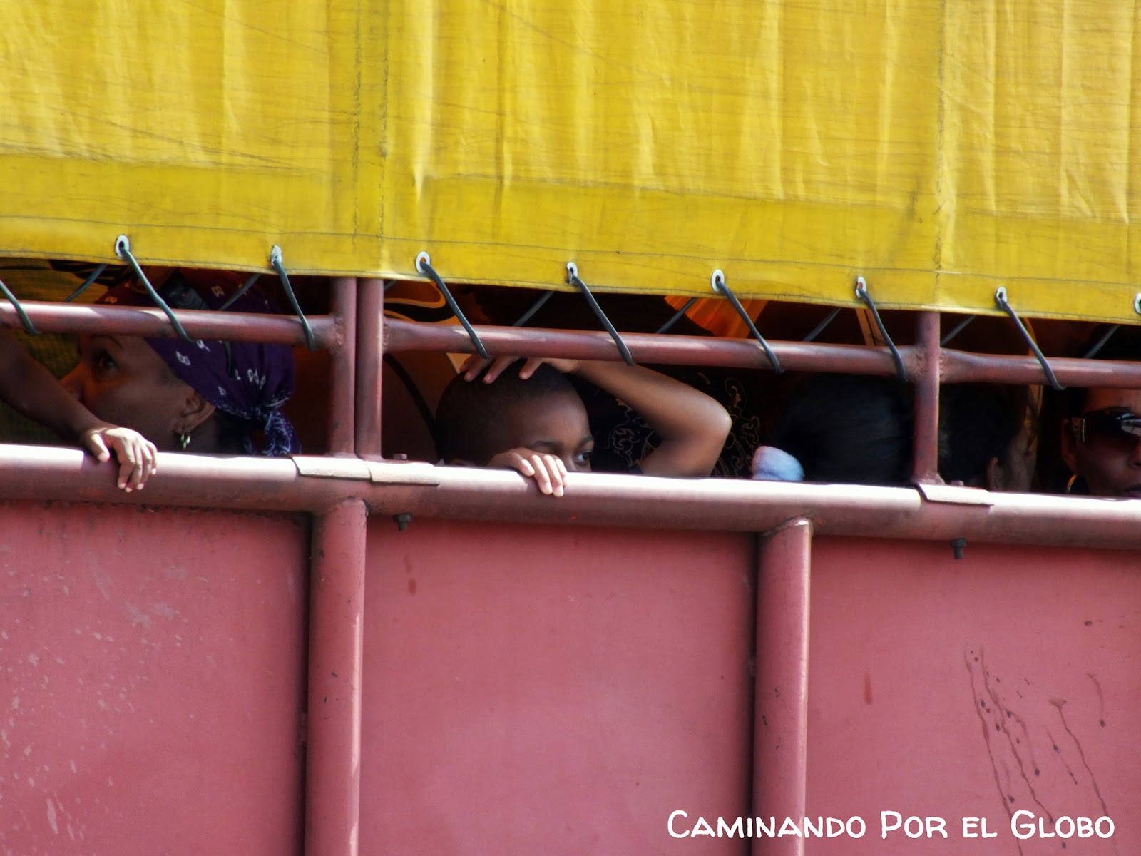 Obviamente no es seguro por la gente va parada en la caja de un camión. No hay cinturón de seguridad y no está controlado (creo) por ningún ente, como si las empresas de buses. No se si leíste mis experiencias en camión: una es esta: http://caminandoporelglobo.com/2013/05/una-aventura-de-14-horas-en-camion.html