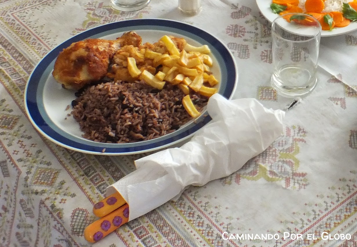 Para comer se pueden buscar Paladares en MN donde se come por 25 MN. También se puede buscar restaurantes del Estado donde se come un poco mejor y por 40MN aproximadamente. En los lugares turísticos muchos les van a decir que no se consigue comida en MN. Es mentira, porque hasta en los lugares más turísticos y caros hay trabajadores que tienen que comer, entonces nosotros también podemos encontrar esos lugarcitos. Una buena técnica que usamos nosotros es acercarnos a los taxistas y preguntarles donde podemos conseguir cajitas de comida. Eso nunca falla. Siempre pudimos conseguir comida barata. Cabe aclarar que éste tipo de comida, que ellos llaman criolla, no es muy variada. Siempre consta de algún tipo de carne, generalmente cerdo o pollo, con arroz congrís (que es arroz con un poco de frijoles negros), boñato (batata) y ensaladita de tomate, pepino y col. Son platos muy abundantes y riquísimos, pero siempre es lo mismo.