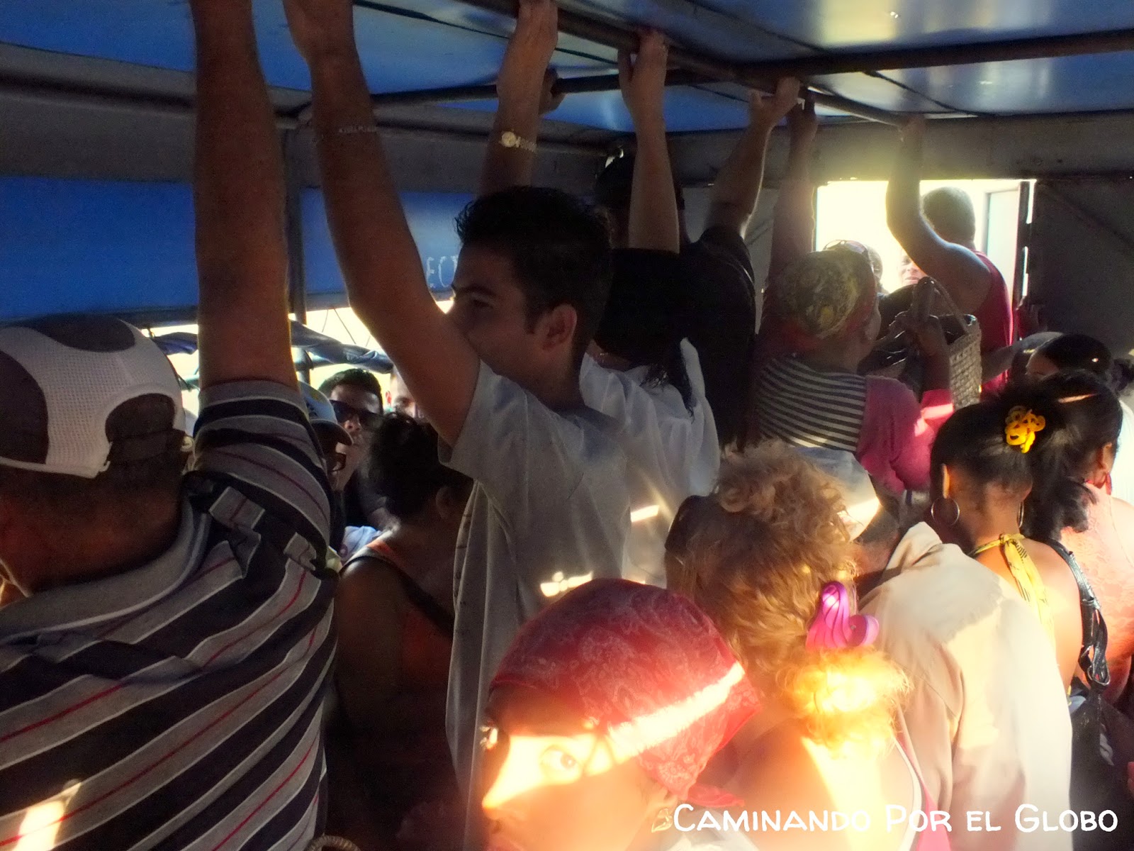 Otra manera de viajar por Cuba es «haciendo botella». Ésto es similar a hacer dedo, pero hay que ir hasta las rutas que salen de las ciudades y buscar a los amarillos. Los amarillos son personas vestidas de dicho color, que trabajan para el Estado. Los vehículos que son del Estado y no van llenos deben parar sí o sí y llevar gente. Y la gente tiene que darle algo de plata al amarillo en una latita que tienen, una especie de boleto, pero muy barato. Y también aveces hay que darle algo al que los lleva. Nosotros un domingo que no había camión intentamos hacer botella, fuimos a las 6 de la mañana y no solo que no pasaba ni un auto, sino que tampoco estaba el amarillo. Y hay que tener paciencia porque hay muchos esperando para subir.
